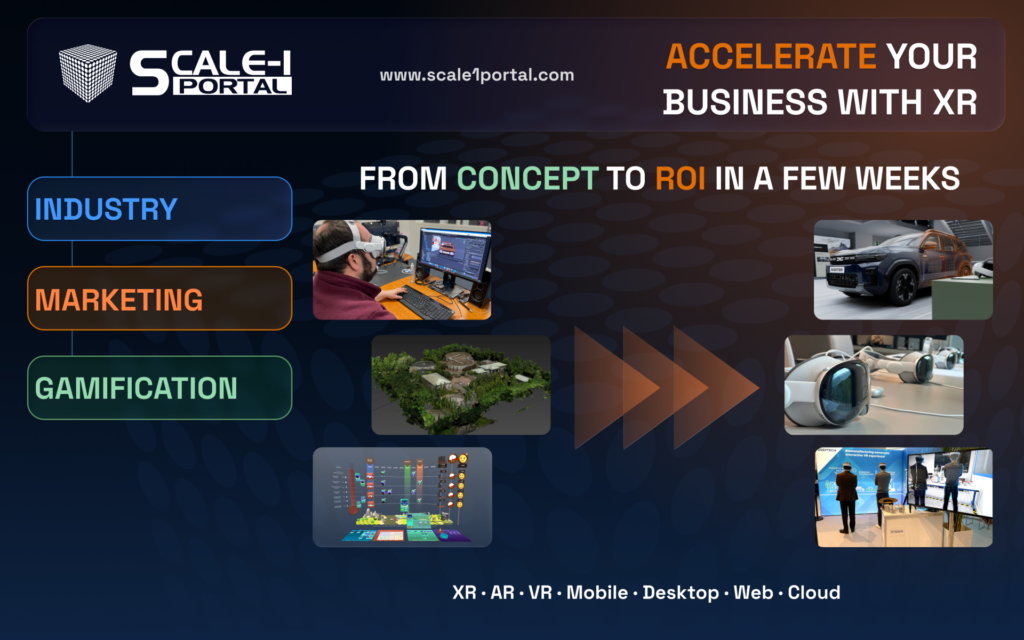 La XR n’est plus un sujet “future tech”. C’est un levier business. Venez découvrir comment Scale-1 Portal aide ses clients à accélérer leurs processus métier et booster leurs ventes avec des solutions XR concrètes, efficaces et rapidement déployables. Aujourd’hui, tout va plus vite : les technos XR sont matures, les outils de développement boostés à l’IA changent la donne, et nous pouvons passer du concept au POC puis au déploiement en quelques semaines.
